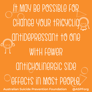 In some cases, it may be possible for your doctor to change your tricyclic antidepressant to one with fewer anticholinergic side effects in most people, (eg Nortriptyline or Dothiepien) or consider Mianserin, a derivative of the tricyclic antidepressants with no anticholinergic side effects. However, do keep in mind that a new antidepressant may not necessarily give you the same benefits as the one you are currently taking.