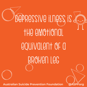 In contrast, depressive illness, is a much more severe and prolonged condition, with persistent sadness, negativity and difficulty coping, which will affect about 20% of people at some stage in their lives. Those who have not suffered depressive illness can understand more clearly the suffering involved by recalling the most distressed state they have experienced in their own lives and imagine that feeling continuing for weeks or months. Depressive illness is the emotional equivalent of a broken leg. The condition is painful and disabling, but with a very high cure rate. Indeed, many people state they would far prefer to have a broken leg or some other obvious physical problem, which would allow them and the people around them to understand why they are so suddenly disabled.